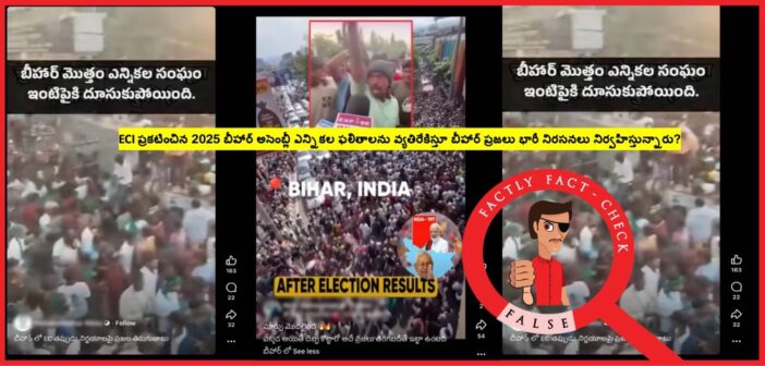 2025 బీహార్ అసెంబ్లీ ఎన్నికల ఫలితాలకు వ్యతిరేకంగా బీహార్ ప్రజలు భారీ నిరసనలు నిర్వహిస్తున్నారని పేర్కొంటూ సంబంధం లేని వీడియోలను షేర్ చేస్తున్నారు
