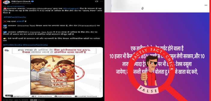 A post claiming that the Indian government will impose an 85% tax on transactions over ₹10 lakhs is being circulated…