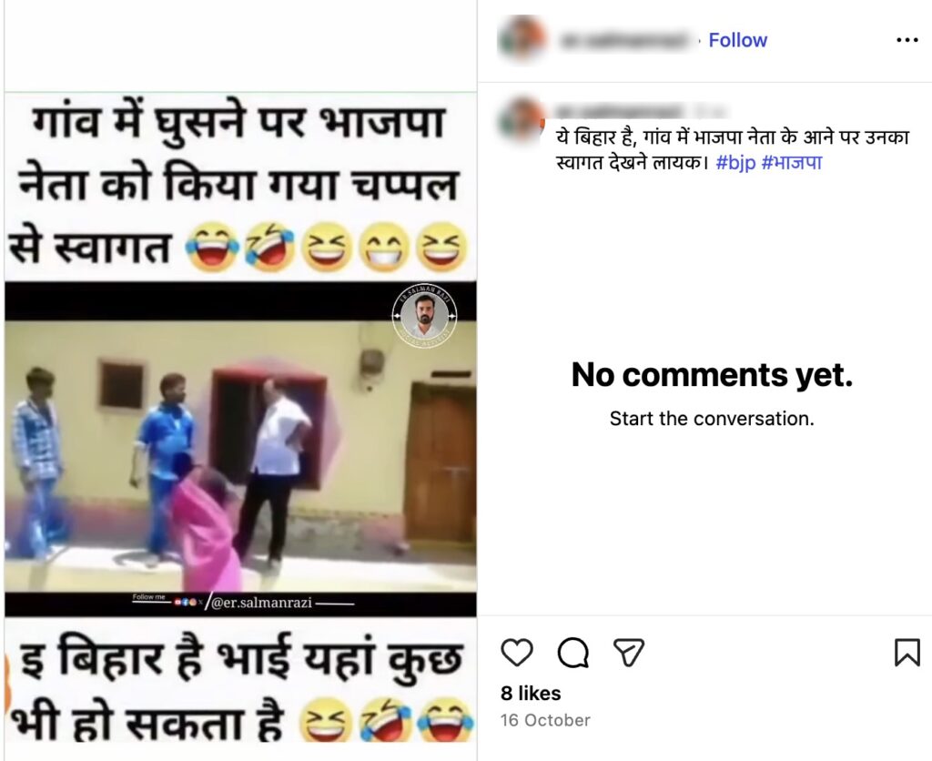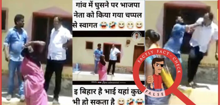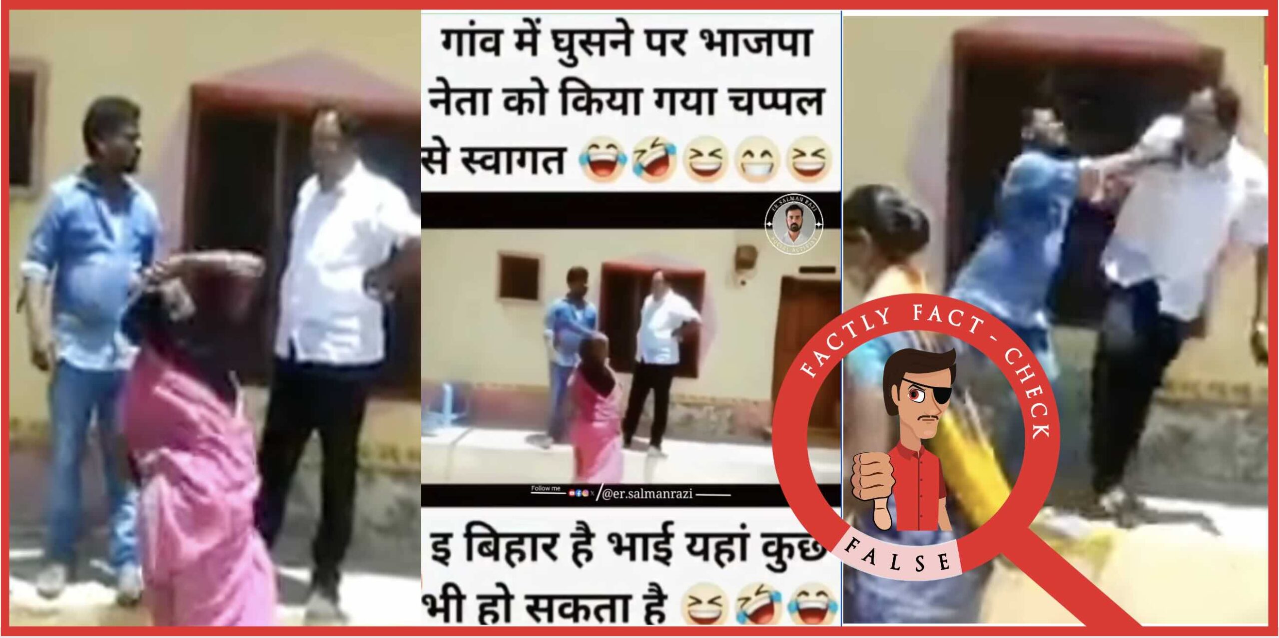 In the context of the 2025 Bihar Assembly elections, a video (here and here) circulating on social media shows a woman attempting to hit a man with slippers, after which the man kicks her, and another man kicks him. It is being claimed that the man is a BJP candidate in Bihar who was beaten with slippers by voters. Let’s find out the truth behind this video.