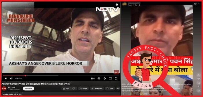 To sum up, a 2017 video of Akshay Kumar condemning the mass molestation of women in Bangalore is shared as his comments on Pawan Singh-Jyoti Singh’s marital dispute.