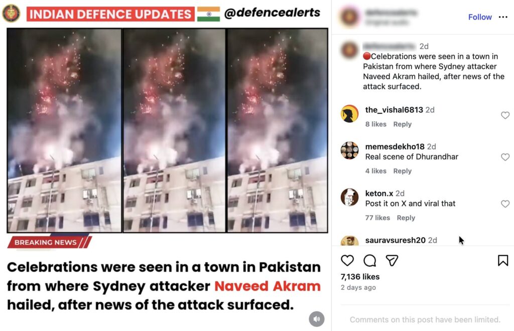 Claim: The video shows celebrations in a town in Pakistan following the Bondi Beach terror attack.