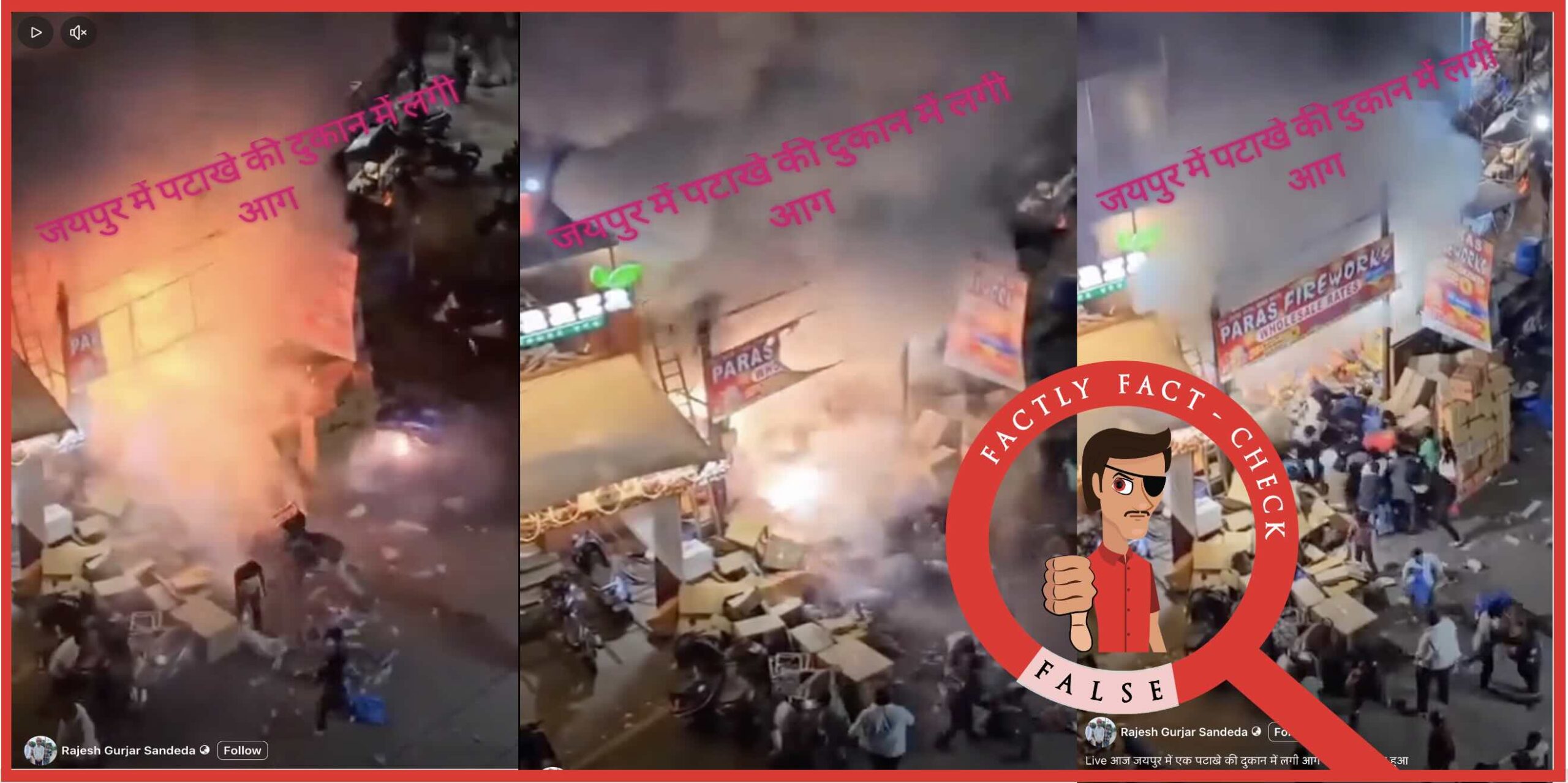 Claim: The visuals show a recent fire at a firecracker shop in Jaipur/Bokaro in October 2025.