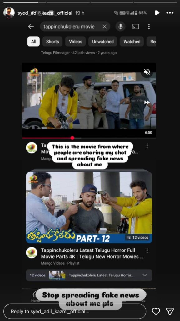 We also found Syed Adil Kazmi’s Instagram handle, where he posted a story addressing the viral video. He clarified that the video is from a movie and that people are sharing his shot to spread fake news about him.