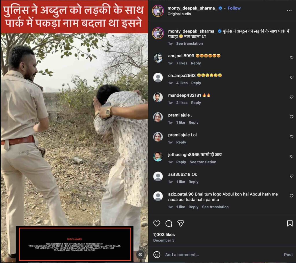 To verify the claim, we conducted a reverse image search on the internet using a few keyframes from the viral video. This search led us to an Instagram post that contained the same video. This was uploaded by a user named ‘monty_deepak_sharma_’ on 3 December 2025.