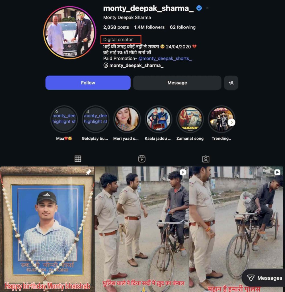According to the bio on this page, Monty Deepak Sharma is a digital creator. This makes it clear that the viral video is scripted and does not depict a real incident. We also found the same video on Monty Deepak Sharma’s Facebook page, where he describes himself as a ‘Digital Creator’ as well.
