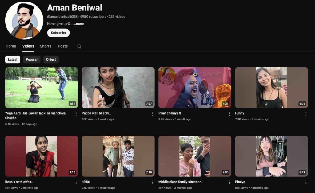 Through further search, we learned that Aman Benival uploads such scripted videos on his YouTube channel. He appears in many of his videos, playing a similar role to the one he did in the viral video, which is a man who secretly films such incidents and confronts them later. You can find such videos uploaded by him here and here.