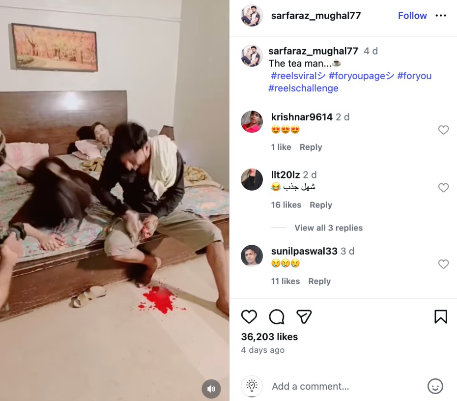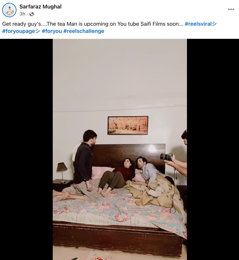 Upon reviewing the handle, we found that the page bio states it is a content creator’s account from Karachi, Pakistan. We also found another video featuring the same man, where the caption mentions that it is a thriller scene from an upcoming big movie. Additionally, he has posted another behind-the-scenes video on his Facebook handle, showing the same background as seen in the viral video.