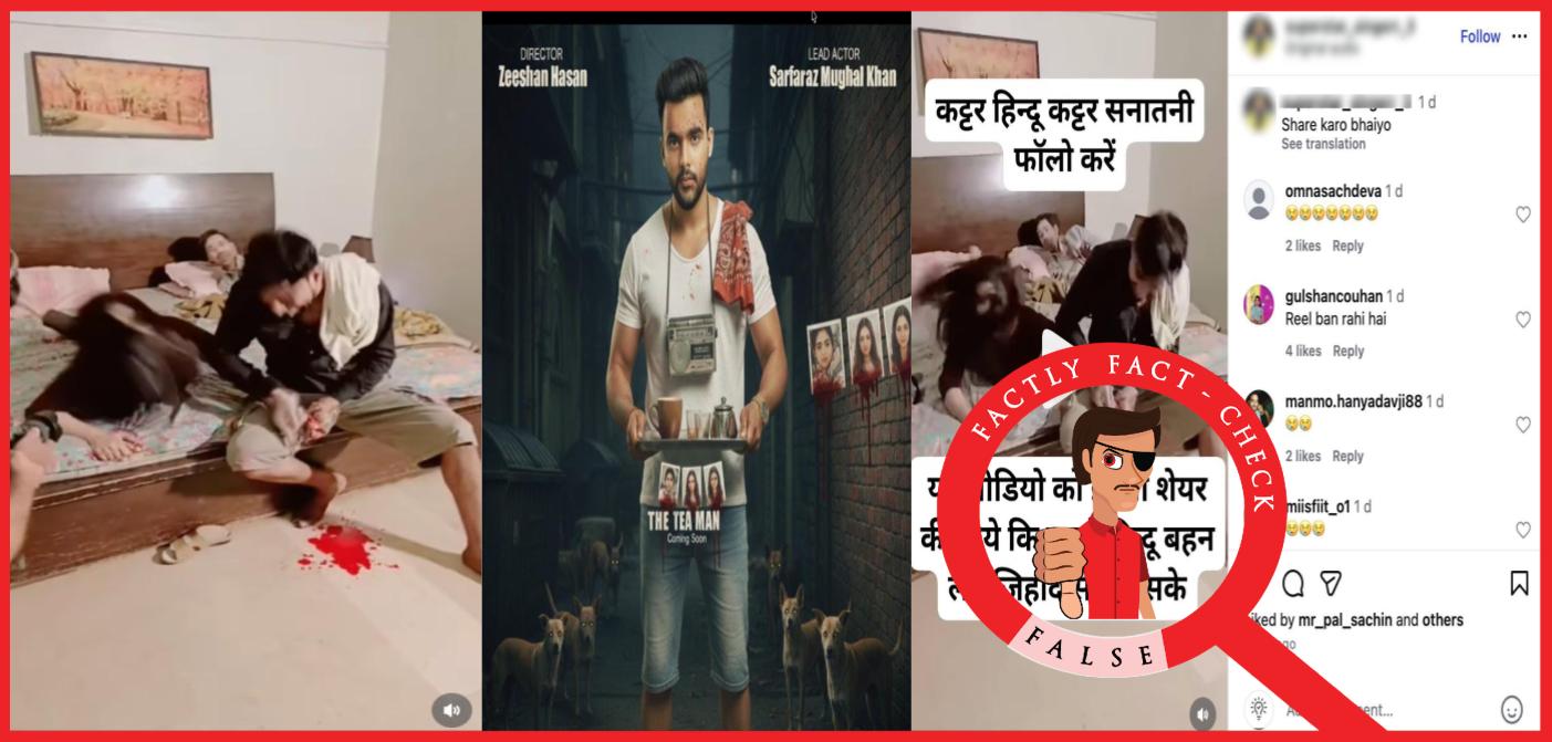 Fact: The viral video does not show a real ‘Love Jihad’ incident. It is a scene from a film shoot. The account that originally posted the video is from Karachi, Pakistan, and the clip is linked to a film titled The Tea Man. Behind-the-scenes videos and the film’s poster confirm that the visuals are part of a film shoot, not a real incident. Hence, the claim made in the post is FALSE.
