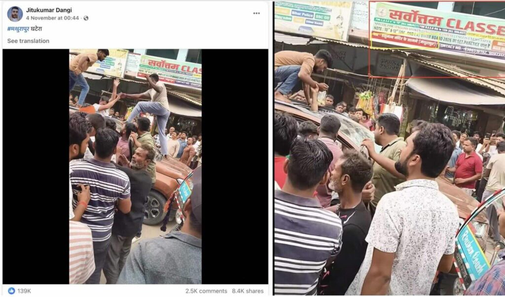 Bageshwar Dham Dhirendra Krishna Shastri’s ‘Sanatan Hindu Ekta Padayatra’, which began at the Chhatarpur Temple in Delhi on 7 November 2025, concluded on 16 November 2025 at the Banke Bihari Temple in Vrindavan, Mathura, Uttar Pradesh (here, here, and here). In this context, a video (here, here, here, and here) showing several youths beating a man standing through a car’s sunroof is going viral on social media with the claim that it shows a man being assaulted in Mathura for protesting against the Bageshwar Dham Sarkar’s Yatra. Through this article, let us fact-check the claim made in the post.