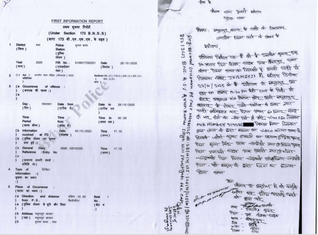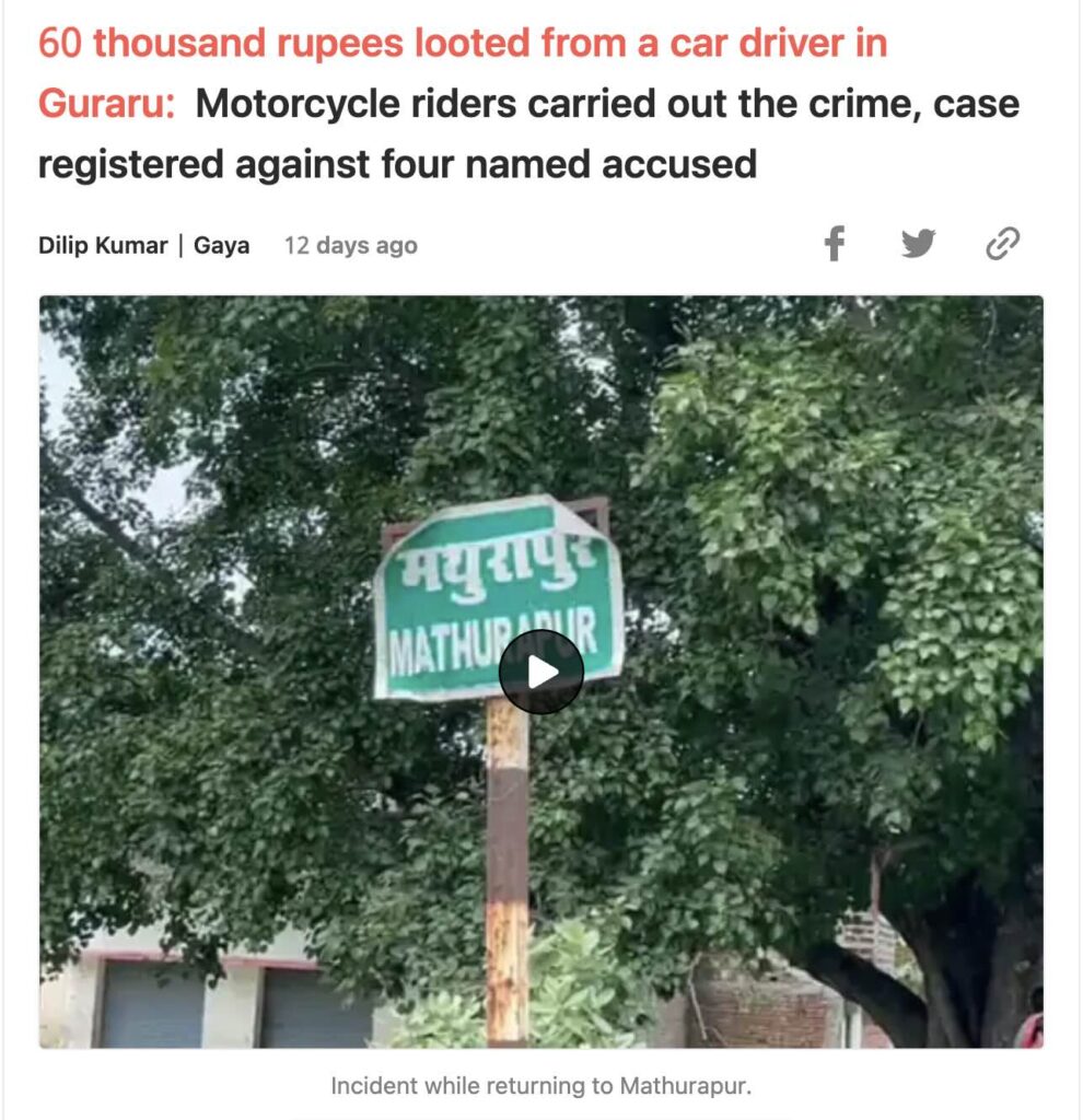 Taking this as a cue, we conducted a relevant keyword search and found multiple news reports about the incident (here, here). According to these reports, the incident took place on 27 October 2025, when four bike-borne assailants allegedly beat up a car driver named Ramjeet Kumar in the Guraru Police Station area of Gaya district and robbed him of ₹60,000. On that day, Ramjeet Kumar, a resident of a village under Koch Police Station, was returning to Mathurapur from Rafiganj when the accused stopped his car and attacked him. Following the incident, an FIR was filed at the Guraru Police Station against four local youths identified as Prince Kumar, Arun Kumar, Bhola Chandravanshi, and Vinay Chandravanshi.