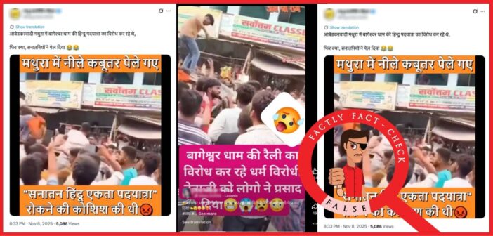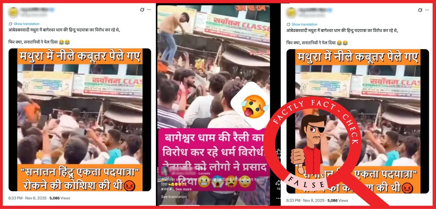 Claim: The video shows a man being assaulted in Mathura for protesting against Bageshwar Dham Sarkar’s ‘Sanatan Hindu Ekta Padayatra’.