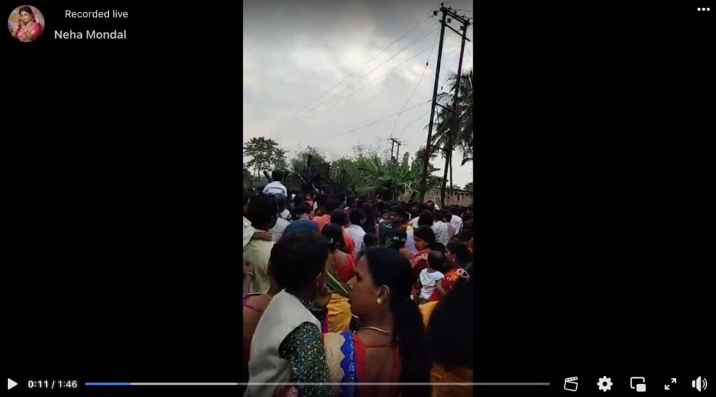 Alt News contacted Neha Mondal, who said the people seen in the video were heading to witness the immersion of the Kali idol in the Mathabhanga River. Our search also showed that Shikarpur is a village under the Murutia police station area in the Karimpur II CD block of Nadia district, West Bengal. The village is known for its Kali Puja held at Funkatala, a locality that attracts thousands of visitors every year — not just locals but people from distant areas as well. Mathabhanga is a transboundary river that originates from the Padma in Bangladesh and enters India at Gede in Nadia district, following which it bifurcates into Ichhamati and Churni. At Murutia, the river runs along the International Border