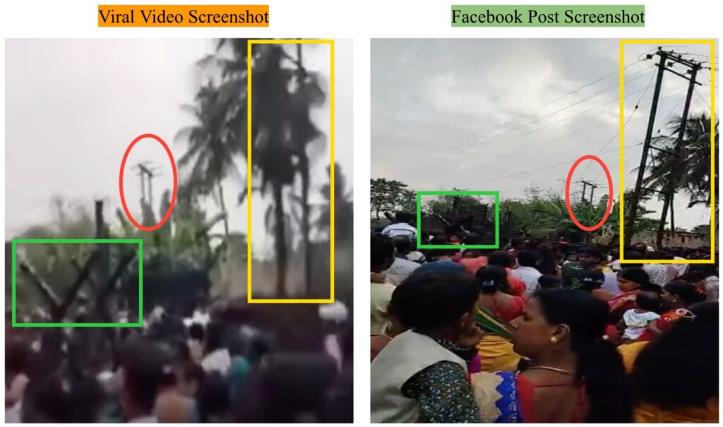 Dutta also shared a geotagged photo of the exact spot where the crowd had gathered. The features visible in the viral video match those in the photo he provided. The comparison is shown below: