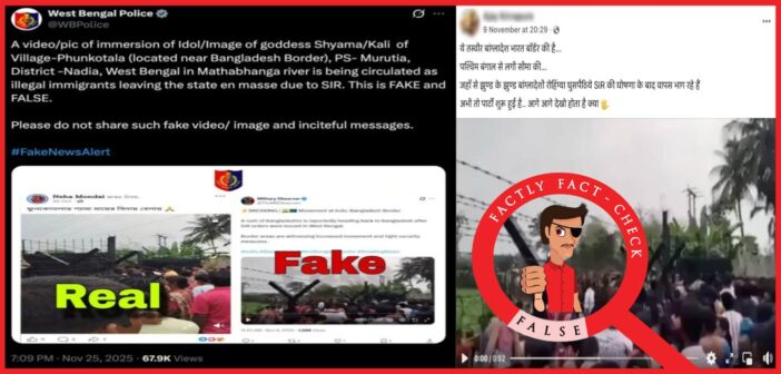 In an X post on 25 November 2025, the West Bengal Police clarified that the viral video is being shared with false claims and actually shows the Kali idol immersion at Phunkotala village in Nadia district, not illegal immigrants leaving the state, and warned against spreading such misleading content.