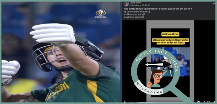 A video (here and here) of South African women’s cricketer Tazmin Brits kneeling and shooting an arrow from an invisible bow is going viral on social media. Some users are sharing the video, claiming that she did this in imitation of Lord Rama in a match against Pakistan, in support of India. We will fact-check this claim through this article.