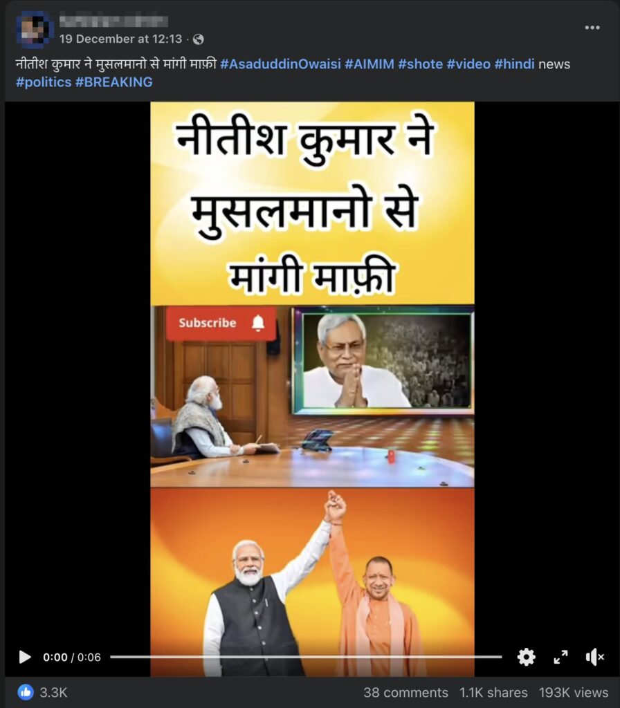 To sum up, an AI-generated video is falsely shared as visuals of CM Nitish Kumar apologising to muslims.