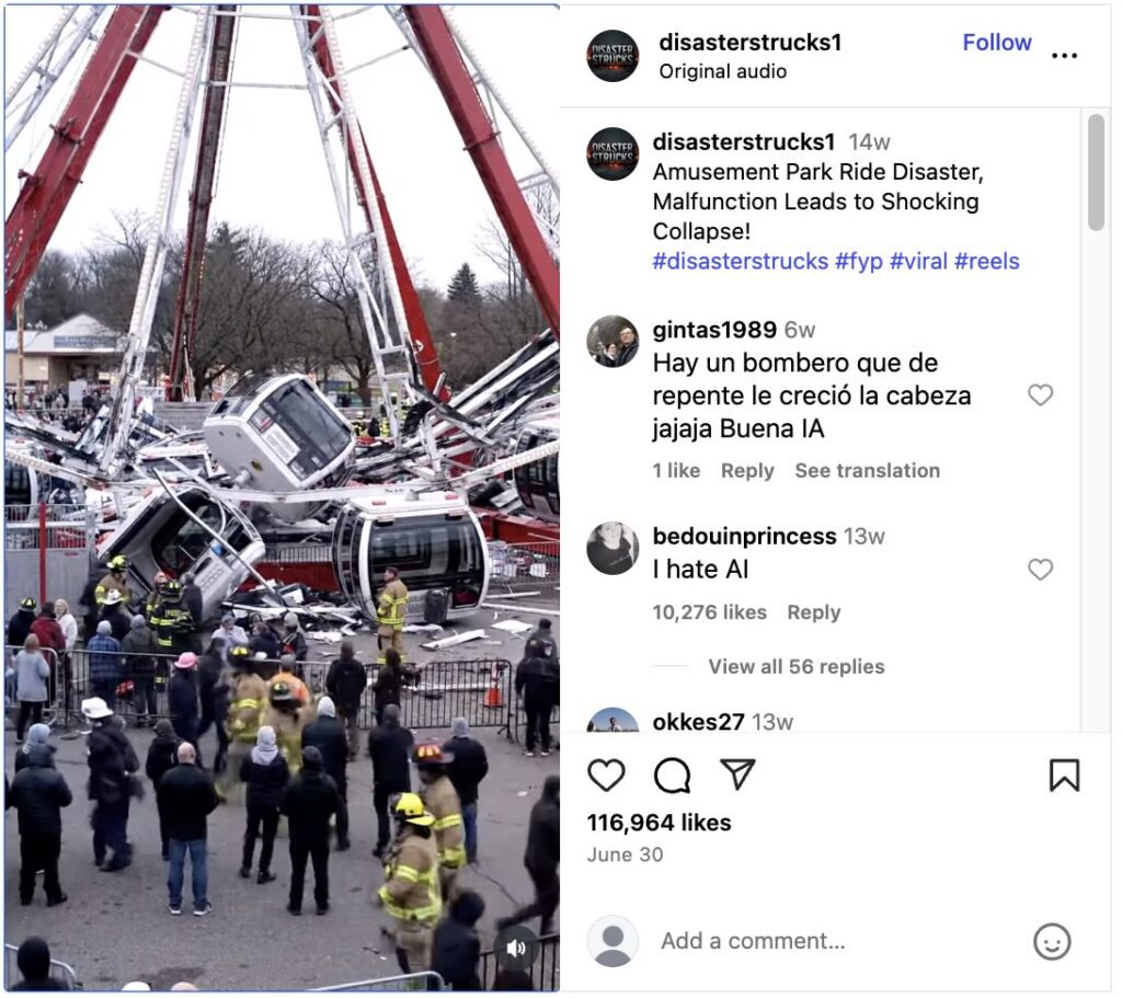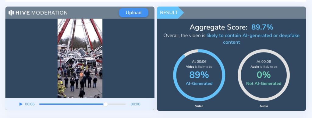 To sum it up, this viral video showing an amusement park ride collapse is AI-generated.