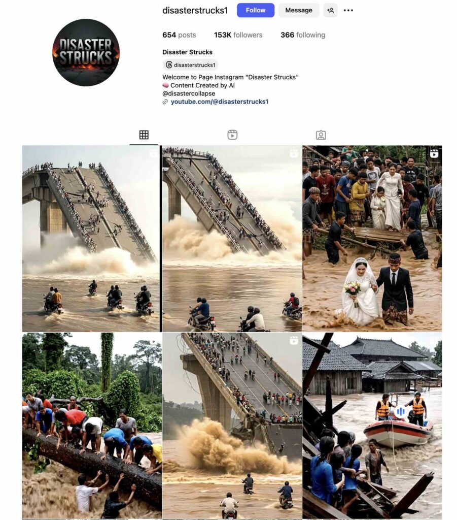 A reverse image search of keyframes from the viral video revealed that this video (archived) was originally shared on an Instagram page named ‘disasterstrucks1’ on 30 June 2025. The bio of this page states that it shares AI-generated content. Upon reviewing the page, we found that it frequently posts content created using AI.