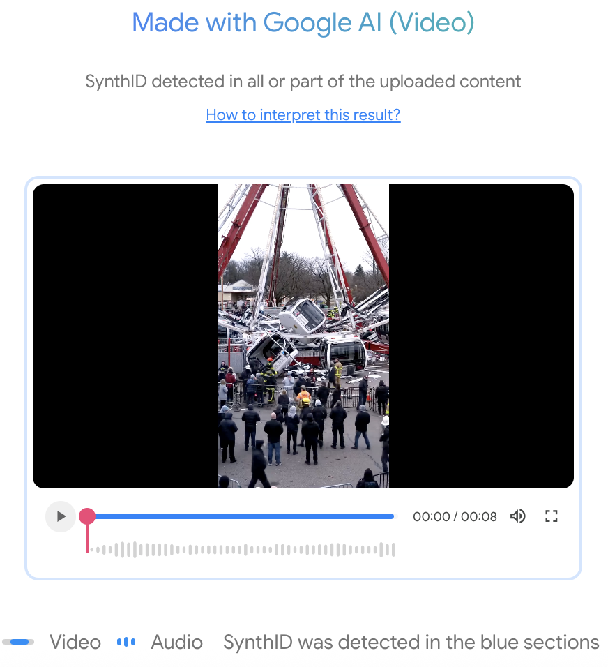 To further determine whether the viral video was AI-generated, we analysed it using AI content detection tools such as Hive and Google’s SynthID. Hive indicated a 89.7% likelihood of the video being AI-generated. Similarly, Google’s SynthID tool — a platform designed to detect content created by its AI models — confirmed that the video had indeed been generated using Google AI. Based on this evidence, it is clear that the viral video is AI-generated and does not depict a real incident.