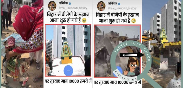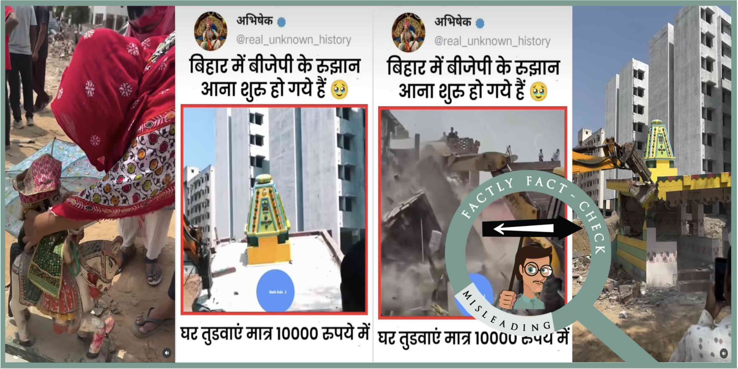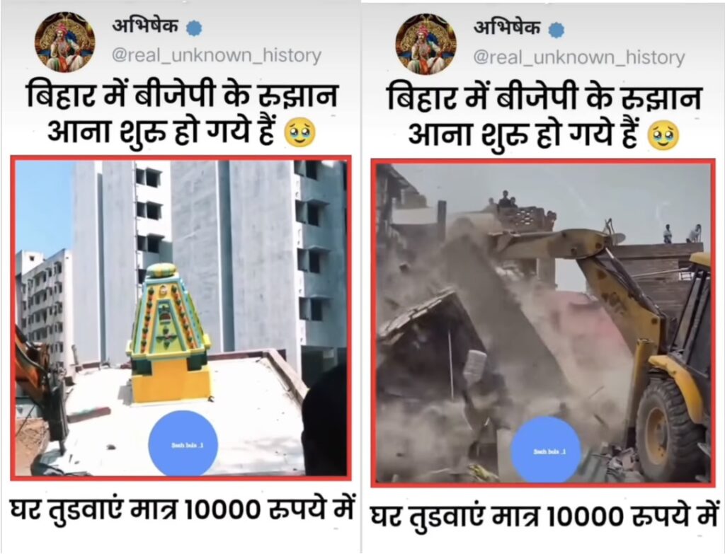 A video is circulating online featuring multiple clips of bulldozers demolishing buildings and temples while local residents voice their complaints to the media. It is being claimed that the footage is from Bihar, where the NDA government allegedly began demolishing houses after winning the elections. We have also received several queries on our WhatsApp tipline (+91 92470 52470) asking whether these videos are related to the encroachment drives in Bihar. Let’s examine the truth behind this video.