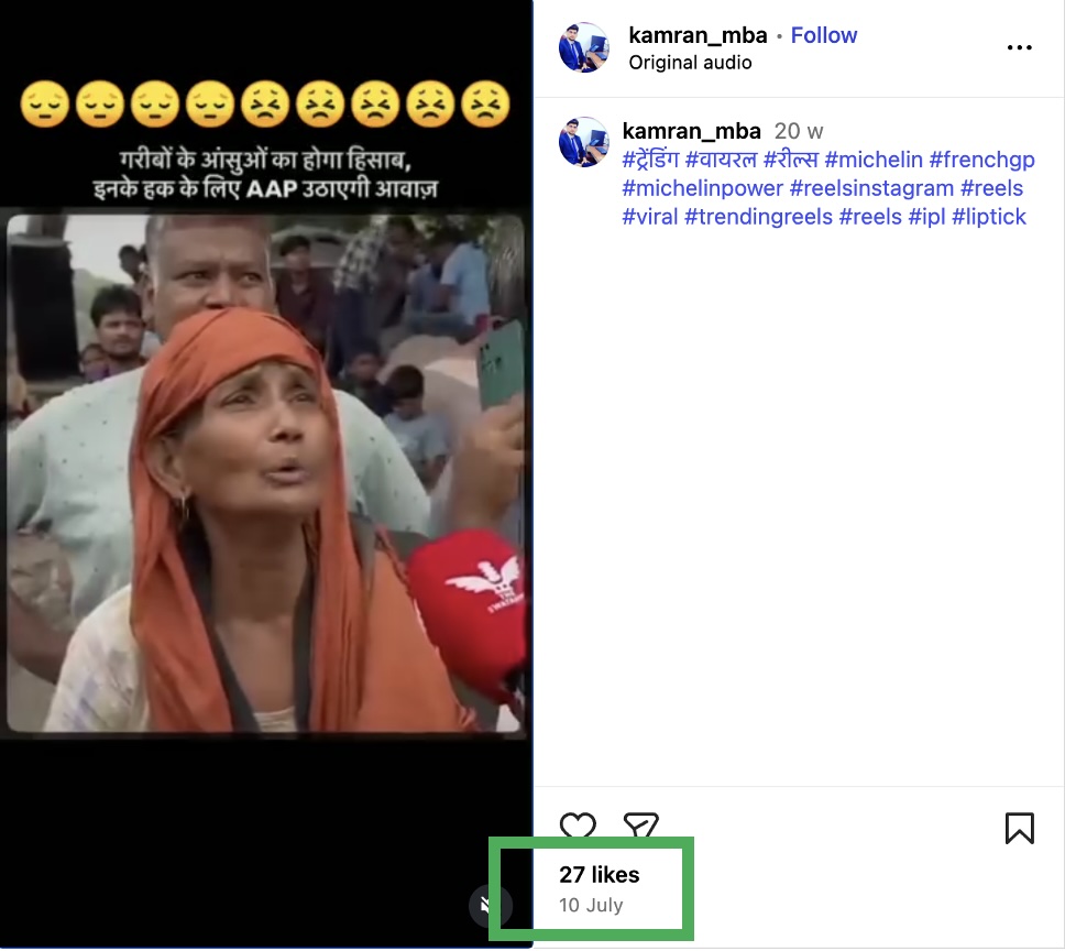 Further investigation led us to the extended version of the first set of clips, uploaded on the AAP official X handle on 29 June 2025. The post was captioned in Hindi, which translates to: “An account will be settled for the tears of the poor. AAP will raise its voice for their rights against the BJP government demolishing the homes of the poor. To become a part of the public movement, all of you are requested to reach Jantar Mantar this morning at 10 AM.” This confirms that the video was created as part of an AAP protest campaign.