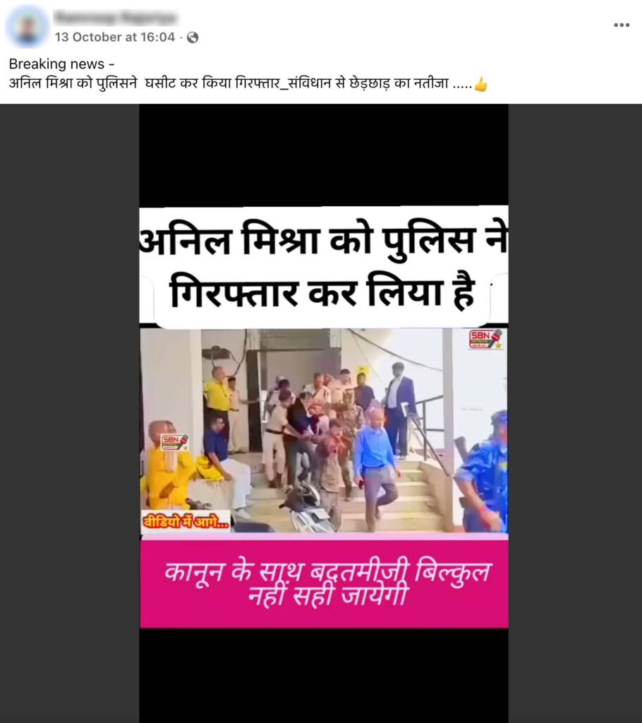 Amid this, a video showing policemen taking a man away is going viral on social media (here, here, and here), with posts claiming that it shows the arrest of Advocate Anil Mishra. Let’s verify the claim made in the post in this article.