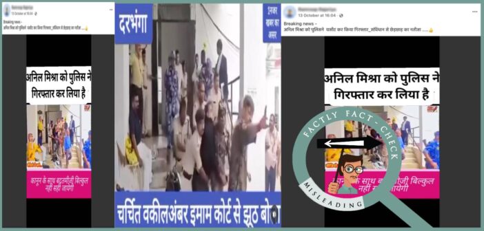 Fact: The video is unrelated to Advocate Anil Mishra and does not show his arrest. It is from June 2025 and depicts the detention of senior advocate Amber Imam Hashmi in Darbhanga, Bihar, following a court order in a perjury case. City Superintendent of Police, Gwalior, clarified that Advocate Anil Mishra has not been arrested, as the FIRs filed against him fall under non-cognisable sections where arrest is not applicable. He is currently at his residence in Gwalior, and the authorities also confirmed that the video circulating on social media is fake. Hence, the claim made in the post is MISLEADING.