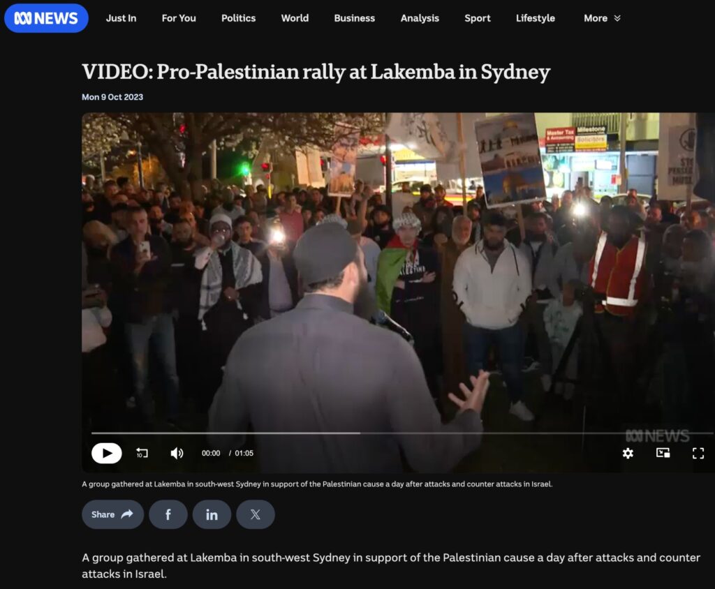 According to reports (here, here, and here), on 08 October 2023 at Lakemba, Sydney, cleric Ibrahim Dadoun addressed a crowd, calling the 07 October 2023 Hamas attack a “day of courage, pride, and victory,” which drew condemnation from Prime Minister Anthony Albanese, who stated there is nothing to celebrate in the killing of innocent civilians. Following the backlash, Dadoun clarified on Facebook that he does not support or condone the loss of innocent lives. During the rally, participants were heard chanting slogans such as “Palestine will be free” and “occupation is the crime,” while Dadoun described the attacks on Israel as acts of resistance.
