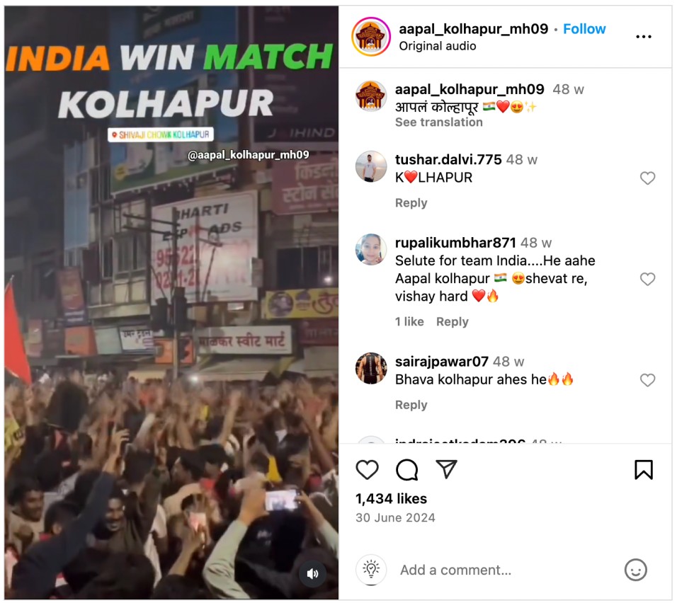 To verify the claim, we performed a reverse image search of the keyframes from the viral video, which led us to multiple social media posts featuring the same video (here, here) (archived) dated 30 June 2024. These posts claimed that the visuals show people celebrating India’s victory against South Africa in the T20 World Cup final held on 29 June 2024. This confirms that the video predates India’s Women’s World Cup victory on 02 November 2025.