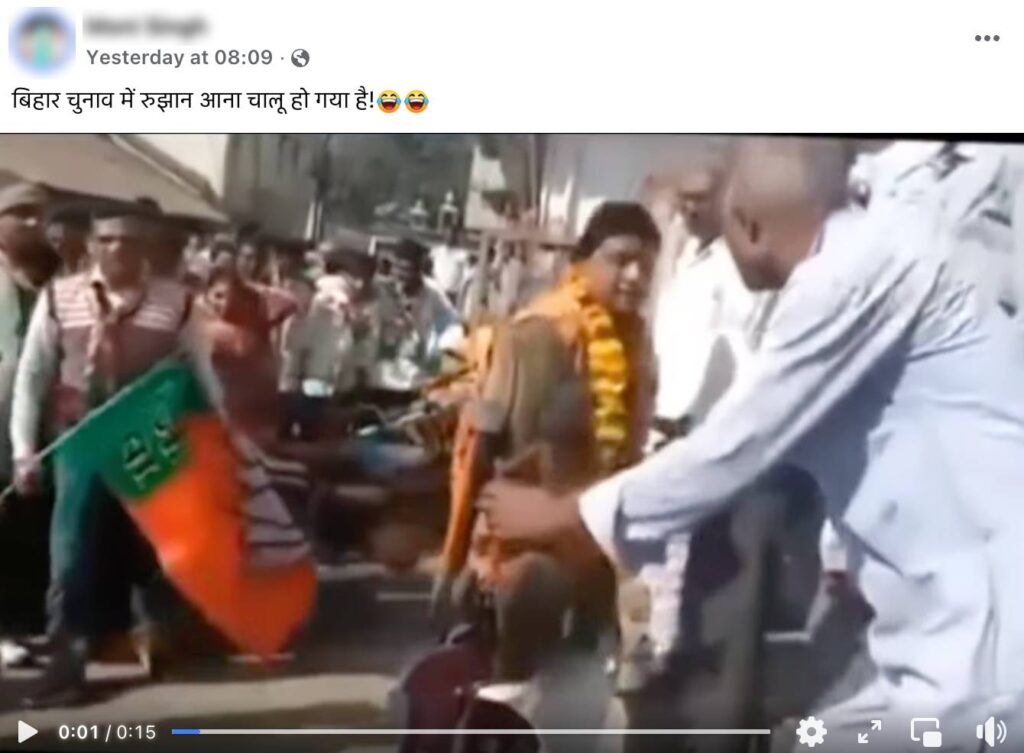 Claim: The video shows a BJP leader being welcomed with a garland of shoes in Bihar ahead of the 2025 Assembly elections.