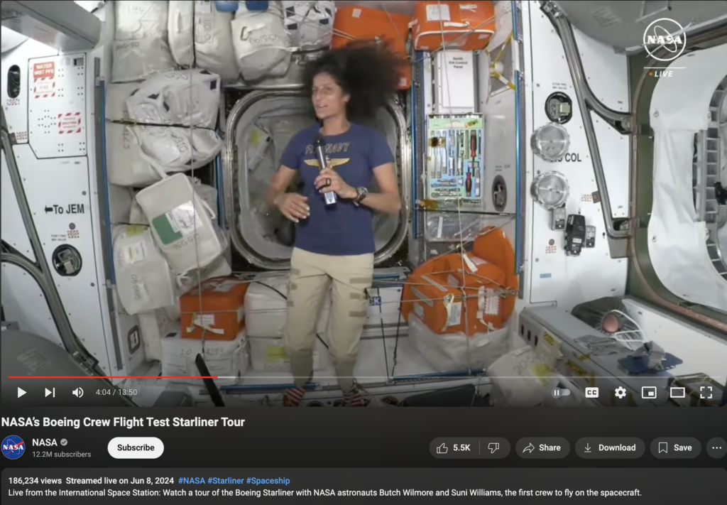 Sunita Williams’ recent (2024) live tour video from the Boeing Starliner spacecraft can be seen here and here.