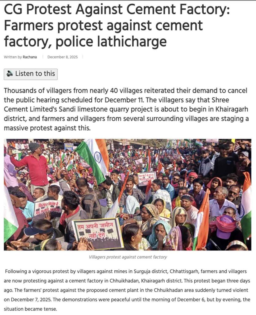As per the reports, the protestors submitted a memorandum to the local Sub-Divisional Magistrate (SDM) to suspend a public hearing that was scheduled for 11 December 2025. Which eventually got postponed.