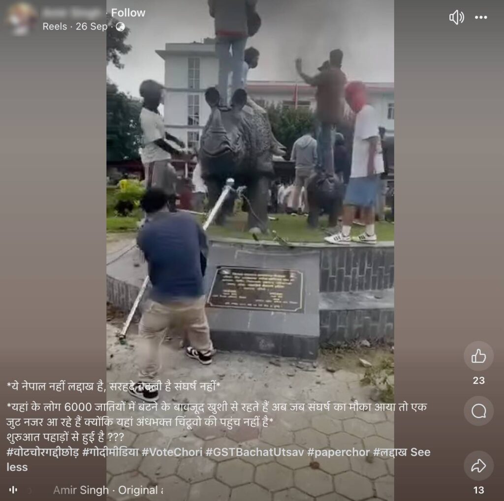 A reverse image search of keyframes from the viral video led to a Facebook post featuring the same video, uploaded on 13 September 2025, which predates the 24 September 2025 Ladakh protest. The post claimed that the video originated from Nepal.