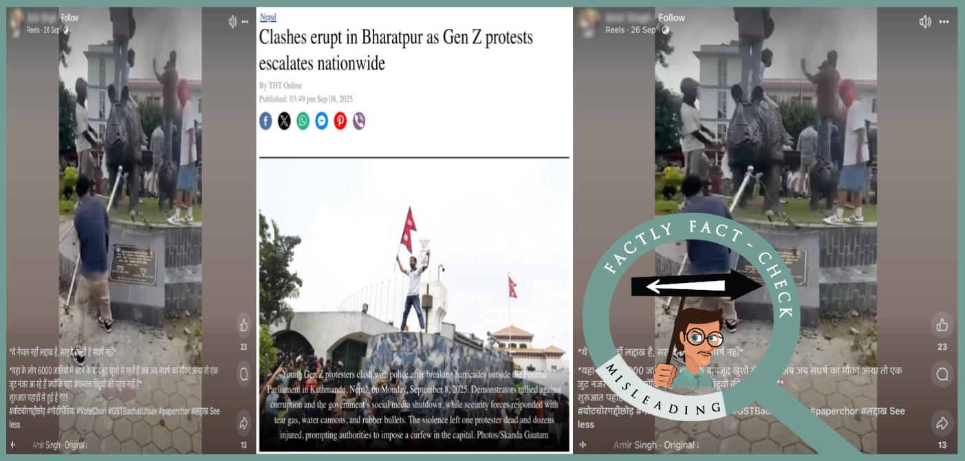 Fact: The viral video does not show protests in Ladakh on 24 September 2025. It depicts violence in Chitwan, Nepal, during Gen-Z protests on 09 September 2025, when government offices, including the District Administration Office, were vandalised. The building in the video has been geolocated to Chitwan, Nepal, and the footage was uploaded online before the Ladakh protests, confirming it is unrelated to Ladakh, India. Hence, the claim made in the post is MISLEADING.