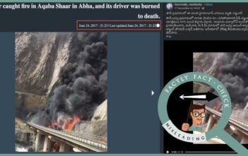 సౌదీ అరేబియాలో భారతీయులు సజీవ దహనం అయిన బస్సు ప్రమాదానికి సంబంధించిన విజువల్స్ అని చెప్తూ 2017 నాటి సంబంధం లేని వీడియోను షేర్ చేస్తున్నారు