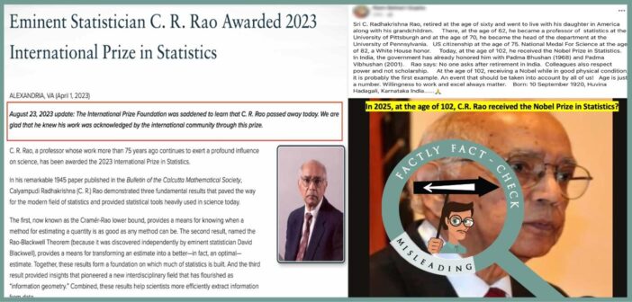 Claim: At the age of 102, Indian-American statistician C. Radhakrishna Rao was awarded the Nobel Prize in Statistics in 2025.