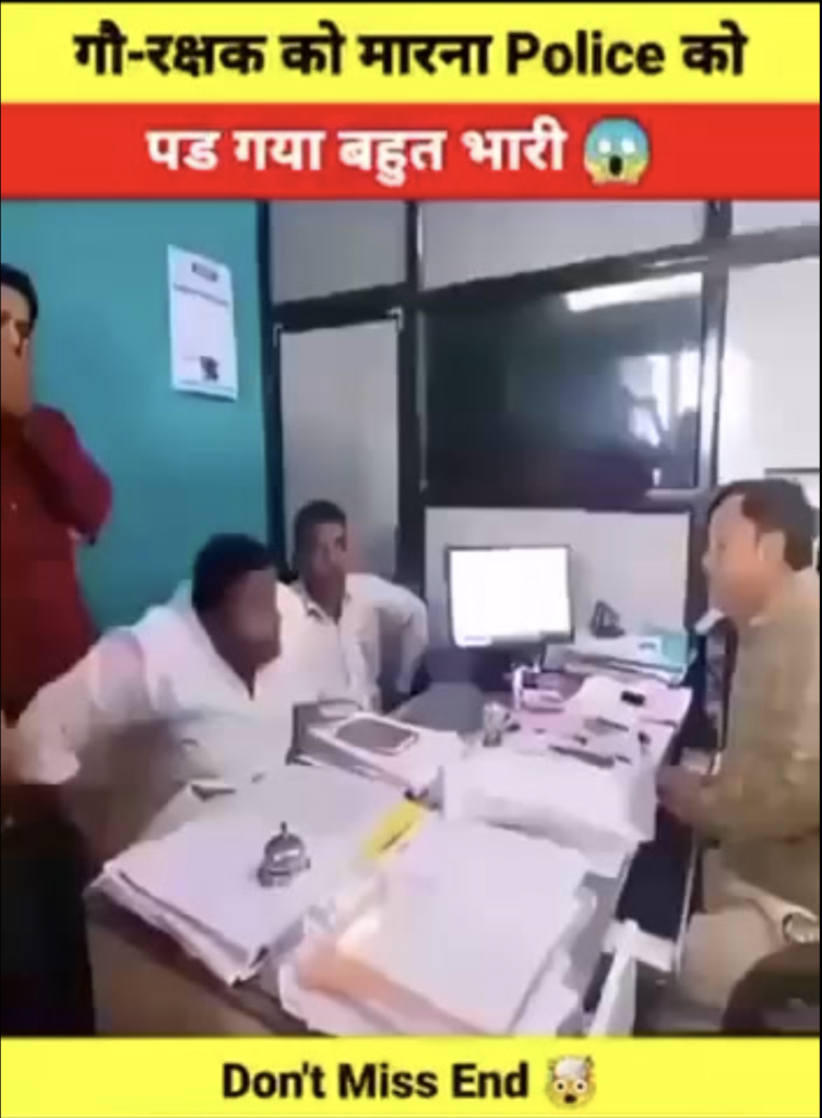 ನಂತರ, ವಿಡಿಯೋದ ಎರಡನೇ ಭಾಗವನ್ನು ಪೊಲೀಸ್ ಅಧಿಕಾರಿಯೊಬ್ಬರು ವ್ಯಕ್ತಿಯೊಬ್ಬರ ಕೂದಲನ್ನು ಹಿಡಿದು ಎಳೆದುಕೊಂಡು ಹೋಗುತ್ತಿರುವುದುನಾವು ಪರಿಶೀಲಿಸಿದಾಗ, ಏಪ್ರಿಲ್ 2025 ರ ಹಲವಾರು ಮಾಧ್ಯಮ ವರದಿಗಳು (ಇಲ್ಲಿ, ಇಲ್ಲಿ ಮತ್ತು ಇಲ್ಲಿ) ವಿಡಿಯೊದ ಸ್ಕ್ರೀನ್ಶಾಟ್ಗಳನ್ನು ಒಳಗೊಂಡಿರುವುದನ್ನು ಕಂಡುಕೊಂಡೆವು. ಈ ವರದಿಗಳ ಪ್ರಕಾರ, ಈ ಘಟನೆಯು ಹರಿಯಾಣದ ಪಾಣಿಪತ್ನಲ್ಲಿ ಪೊಲೀಸ್ ಮತ್ತು ಗೋ ರಕ್ಷಕರ ನಡುವಿನ ಘರ್ಷಣೆಯ ಸಮಯದಲ್ಲಿ ಸಂಭವಿಸಿದೆ. ಎಳೆದುಕೊಂಡು ಹೋಗುತ್ತಿದ್ದ ವ್ಯಕ್ತಿಯ ಹೆಸರು ಕರಣ್, ಮತ್ತು ಅವರು ಗೋ ಕಳ್ಳಸಾಗಣೆದಾರರಿಗೆ ಸೇರಿದ ಎರಡು ವಾಹನಗಳನ್ನು ವಶಪಡಿಸಿಕೊಳ್ಳಲು ಪೊಲೀಸರಿಗೆ ಸಹಾಯ ಮಾಡಿದ್ದ, ಆದರೆ ಪೊಲೀಸರು ಯಾವುದೇ ಕ್ರಮ ಕೈಗೊಳ್ಳದೆ ಅವುಗಳನ್ನು ಬಿಡುಗಡೆ ಮಾಡಿದರು ಎಂದು ಆರೋಪಿಸಿದ್ದರು. ಅವರು ಪ್ರತಿಭಟಿಸಿದಾಗ, ಅವರಿಗೆ ನಿಂದಿಸಿ ಹೊಡೆಯಲಾಯಿತು. ಕರಣ್ ಅವರು ಪಾಣಿಪತ್ನ ಪೊಲೀಸ್ ವರಿಷ್ಠಾಧಿಕಾರಿ ಲೋಕೇಂದ್ರ ಸಿಂಗ್ ಅವರಿಗೆ ದೂರು ನೀಡಿದರು. ನಾಲ್ಕು ಪೊಲೀಸರ ವಿರುದ್ಧ ಕ್ರಮ ತೆಗೆದುಕೊಳ್ಳಲಾಯಿತು: ಇಬ್ಬರನ್ನು ಅಮಾನತುಗೊಳಿಸಲಾಯಿತು, ಒಬ್ಬರನ್ನು ವಜಾಗೊಳಿಸಲಾಯಿತು ಮತ್ತು ನಾಲ್ಕನೆಯವರನ್ನು ಕರ್ತವ್ಯದಿಂದ ತೆಗೆದುಹಾಕಲಾಯಿತು.ಇದು, ವೈರಲ್ ವಿಡಿಯೋವು ಸುಳ್ಳು ಕ್ಲೇಮನ್ನು ಮಾಡಲು ಬಳಸಲಾದ ಸಂಬಂಧವಿಲ್ಲದ ಎರಡು ಘಟನೆಗಳ ಕಾಂಬಿನೇಷನ್ ಎಂಬುದನ್ನು ದೃಢಪಡಿಸುತ್ತದೆ.
