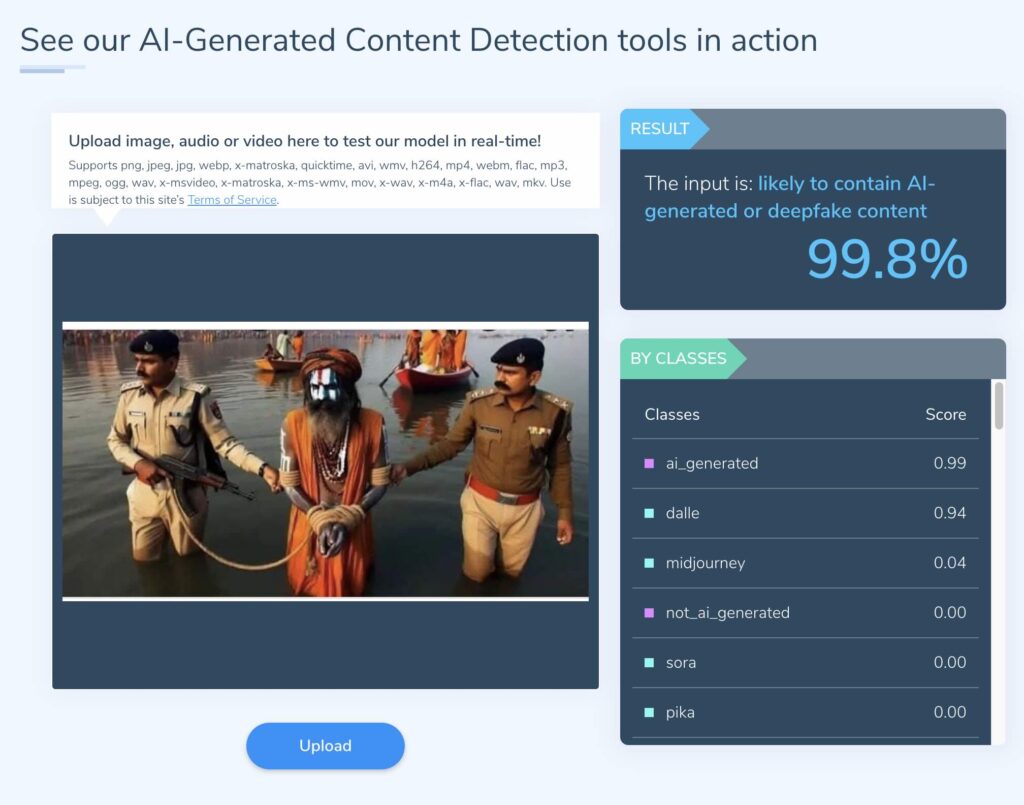 ಈ ವೈರಲ್ ಪೋಸ್ಟ್ನಲ್ಲಿ ಹಂಚಿಕೊಳ್ಳಲಾದ ಫೋಟೋವನ್ನು ನೀವು ಸರಿಯಾಗಿ ಪರಿಶೀಲಿಸಿದರೆ, ಅದು AI- ರಚಿತವಾದ ಫೋಟೋ ಎಂದು ತಿಳಿಯುತ್ತದೆ. ಮುಂದೆ ನಾವು ಈ ವೈರಲ್ ಫೋಟೋವನ್ನು AI- ರಚಿತವಾದದ್ದೇ? ಅಥವಾ ಇಲ್ಲವೇ? ಇದನ್ನು ದೃಢೀಕರಿಸಲು, ಈ ವೈರಲ್ ಫೋಟೋವನ್ನು Hive, wasitAI ನಂತಹ AI-ರಚಿತ ಇಮೇಜ್ ಡಿಟೆಕ್ಟಿಂಗ್ ಪರಿಕರಗಳನ್ನು ಬಳಸಿಕೊಂಡು ಪರೀಕ್ಷಿಸಲಾಯಿತು ಮತ್ತು ಹೈವ್ ಈ ವೈರಲ್ ಫೋಟೋ 99.8% ರಷ್ಟು AI-ರಚಿತ ಫೋಟೋ ಆಗಿರುವ ಸಾಧ್ಯತೆ ಇದೆ ಎಂದು ತಿಳಿಸಿದೆ. ಅಲ್ಲದೆ, ಇದು AI- ರಚಿತವಾದ ಫೋಟೋ ಎಂಬ ಫಲಿತಾಂಶವನ್ನು wasitAI ಸಹ ನೀಡಿದೆ.