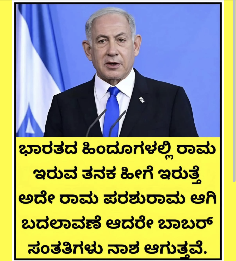 ಇಸ್ರೇಲ್ ಪ್ರಧಾನಿ ಬೆಂಜಮಿನ್ ನೆತನ್ಯಾಹು ಅವರ ಫೋಟೋ ಮತ್ತು ಅದರೊಂದಿಗೆ ಒಂದು ಸಂದೇಶವಿರುವ ಚಿತ್ರವೊಂದು ಫೇಸ್ಬುಕ್ನಲ್ಲಿ ವ್ಯಾಪಕವಾಗಿ ಹಂಚಿಕೆಯಾಗುತ್ತಿದೆ. ಆ ಸಂದೇಶವು ಹಿಂದಿಯಲ್ಲಿದ್ದು, ಅದರ ಕನ್ನಡ ಅನುವಾದ ಹೀಗಿದೆ: “ಹಿಂದೂಗಳು ರಾಮನಂತೆ ಶಾಂತವಾಗಿರುವವರೆಗೆ ರಾಮನ ಅಸ್ತಿತ್ವದ ಬಗ್ಗೆ ಪುರಾವೆಗಳನ್ನು ಕೇಳಲಾಗುತ್ತಿರುತ್ತದೆ, ಯಾವ ದಿನ ಅವರು ಪರಶುರಾಮನಂತೆ ಆಕ್ರಮಣಕಾರಿಯಾಗುತ್ತಾರೋ, ಅಂದು ಬಾಬರನ ಸಂತತಿಯೂ ಜೈ ಶ್ರೀ ರಾಮ್ ಎಂದು ಹೇಳುತ್ತದೆ”. ಹಾಗಾದರೆ ಪೋಸ್ಟ್ ನಲ್ಲಿ ಮಾಡಿದ ಕ್ಲೇಮ್ ಅನ್ನು ಪರಿಶೀಲಿಸೋಣ.