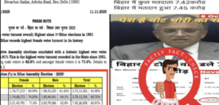 ಕ್ಲೇಮ್: 2025 ರ ಬಿಹಾರ ವಿಧಾನಸಭಾ ಚುನಾವಣೆಯಲ್ಲಿ ಚಲಾವಣೆಯಾದ ಮತಗಳ ಸಂಖ್ಯೆಯು ಅರ್ಹ ಮತದಾರರ ಸಂಖ್ಯೆಯನ್ನು ಮೀರಿತ್ತು.