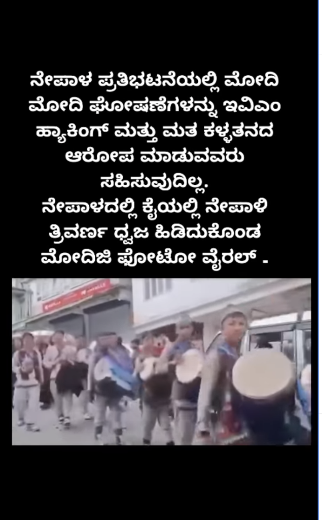 ಕ್ಲೇಮ್: ವೈರಲ್ ಆಗಿರುವ ವೀಡಿಯೊ ಸೆಪ್ಟೆಂಬರ್ 2025 ರ ಪ್ರತಿಭಟನೆಗಳ ಸಂದರ್ಭದಲ್ಲಿ ನೇಪಾಳದ ಜನರು ಭಾರತೀಯ ಪ್ರಧಾನಿ ಮೋದಿಯವರನ್ನು ಬೆಂಬಲಿಸಿ ರಾಲಿ ಮಾಡುತ್ತಿರುವುದನ್ನು ತೋರಿಸುತ್ತದೆ.