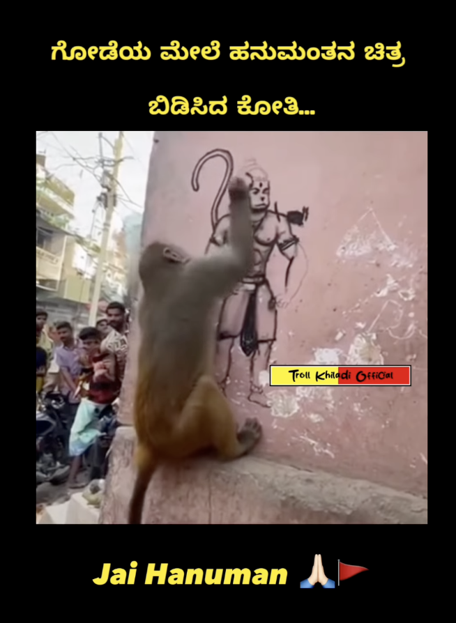 ಸಾಮಾಜಿಕ ಮಾಧ್ಯಮಗಳಲ್ಲಿ ವೈರಲ್ ಆಗುತ್ತಿರುವ ಒಂದು ವಿಡಿಯೋದಲ್ಲಿ (ಇಲ್ಲಿ) ಕೋತಿಯೊಂದು ಗೋಡೆಯ ಮೇಲೆ ಶ್ರೀ ಆಂಜನೇಯ ದೇವರ ಚಿತ್ರವನ್ನು ಬಿಡಿಸುವುದನ್ನು ತೋರಿಸಲಾಗಿದೆ. ಹಲವು ಬಳಕೆದಾರರು ಇದನ್ನು ನಿಜವಾದ ಘಟನೆ ಎಂದು ಹಂಚಿಕೊಳ್ಳುತ್ತಿದ್ದಾರೆ. ಈ ವಿಡಿಯೋದ ಹಿಂದಿನ ಸತ್ಯಾಂಶವನ್ನು ತಿಳಿದುಕೊಳ್ಳೋಣ.