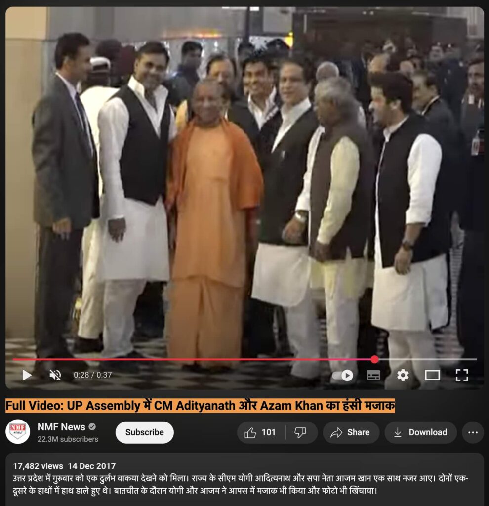 To verify the claim, we reverse searched keyframes from the viral video and found a better-quality version of the same clip uploaded on 14 December 2017 by NMF News, as well as a 15 December 2025 Times Now news report containing this clip. According to these videos, the viral clip captures the moment Yogi and Azam met inside the UP Assembly, smiling, shaking hands, and talking.