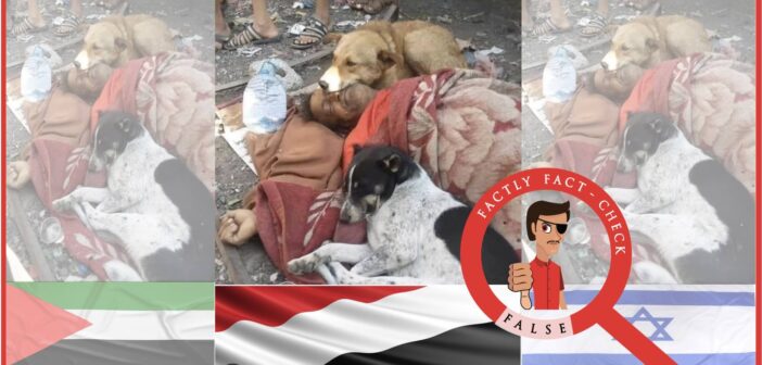 Fact: According to reports from Al Jazeera and other media outlets, the man in the image is Ismail Muhammad Hadi, who lived on the streets of Ebi Market in Yemen. He was known for feeding dogs and suddenly died of a heart attack at night. The dogs surrounded him until people arrived at the market. This image has no connection to Gaza or Israel. Hence, the claim is FALSE .