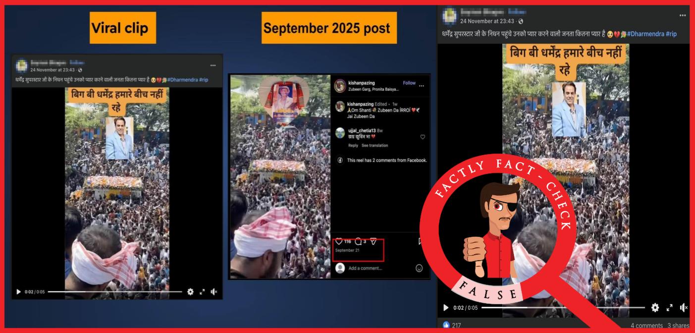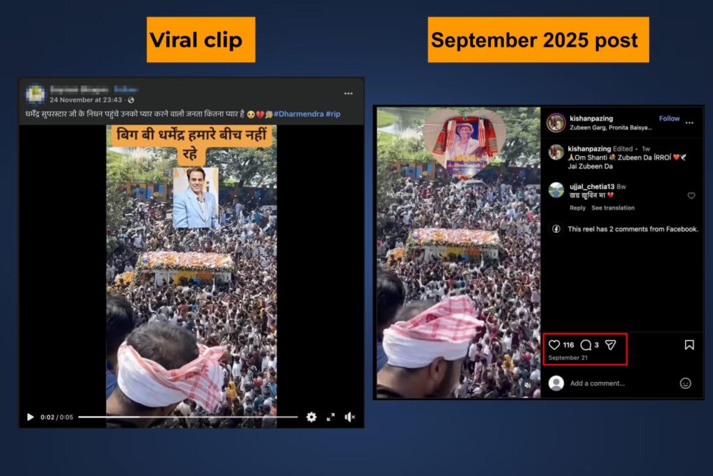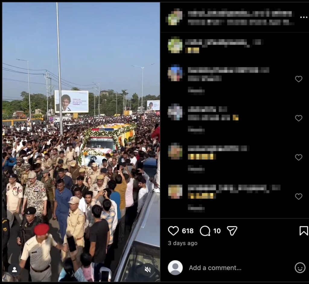 This confirms that these clips are unrelated to Dharmendra’s funeral procession for his last rites, as he passed away in November 2025. In these earlier posts, the video clips were labeled as visuals of Zubeen Garg’s funeral procession.