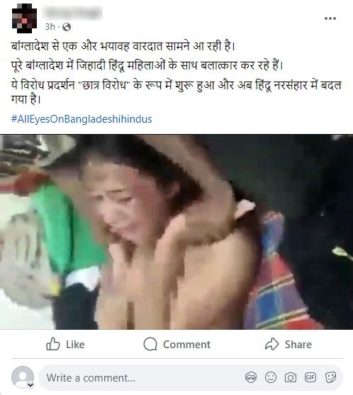 Fact: These visuals pertain to an incident from 2021 in which a Bangladeshi woman was molested in Bangalore by a group of illegal Bangladeshi immigrants. Meanwhile, there are reports about multiple attacks on Hindus during the ongoing protests in Bangladesh. Hence the claim made in the post is FALSE.