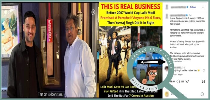 Lalit Modi did not auction the bat used by Yuvraj Singh to hit six sixes in an over; the bat is still with him