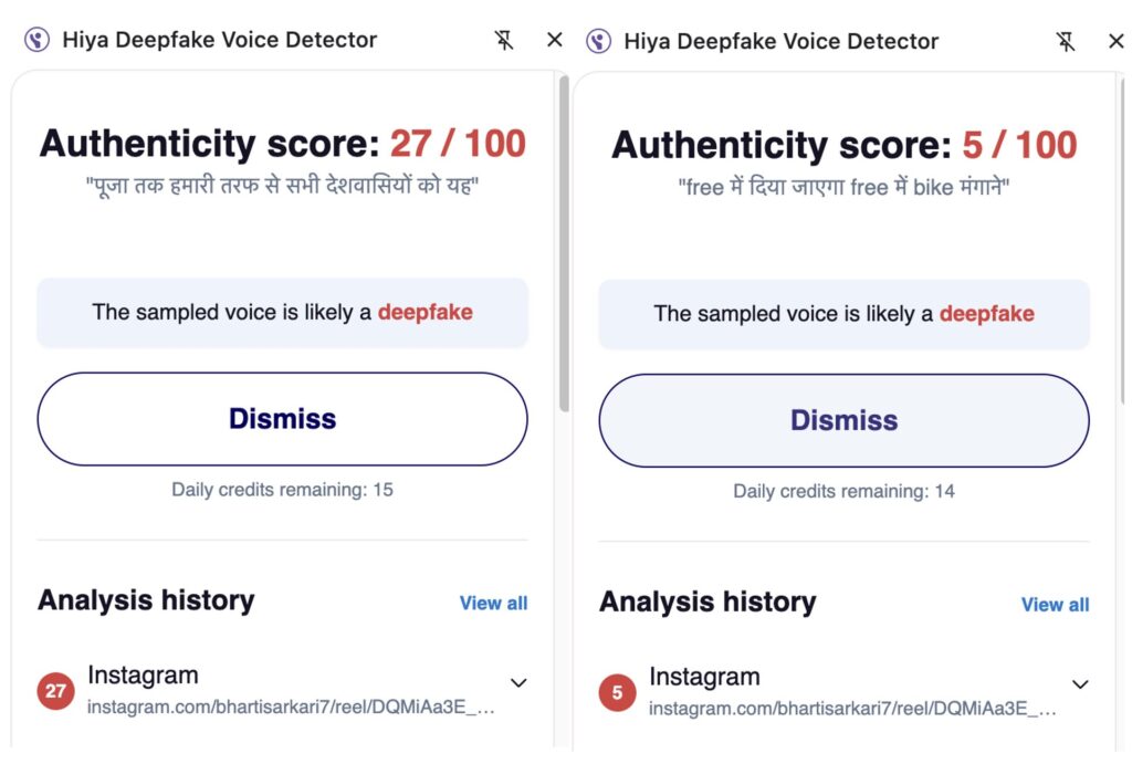 We then ran the viral video through multiple AI voice detection tools, including Resemble AI and Hiya. The results indicated that the audio in the viral video is likely AI-generated. Based on this information, it is evident that the viral video is fake and digitally altered. It was created by modifying the audio of the original video.