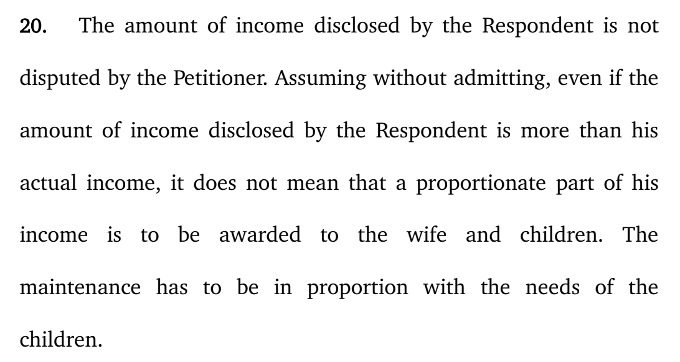 The High Court noted that the husband’s disclosed monthly income was nearly ₹4 lakh, while the wife was a homemaker with no independent income and bore primary responsibility for the children. Although the Court rejected the wife’s claim for ₹3.5 lakh per month as excessive, it found that ₹50,000 collectively for both daughters was inadequate given their standard of living and educational needs.