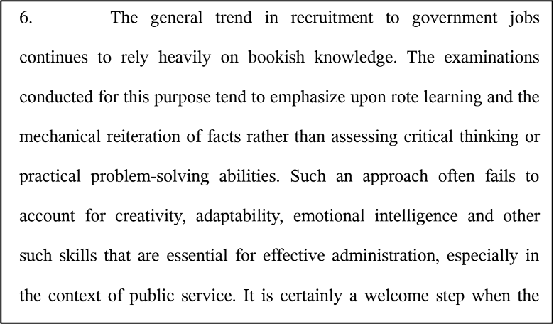 The Court acknowledged the petitioner’s grievance but upheld the HPSC’s right to set the criteria. The Court noted that the general trend in government recruitment often relies too heavily on “bookish knowledge” and “rote learning,” which fails to assess critical thinking or practical skills. The Court considered the inclusion of general awareness a welcome step, as it helps to gauge a candidate’s overall intelligence, analytical skills, and constitutional sensibility, which are essential for public service. The Court reiterated that the screening test was only for shortlisting and its marks did not count toward the final result.